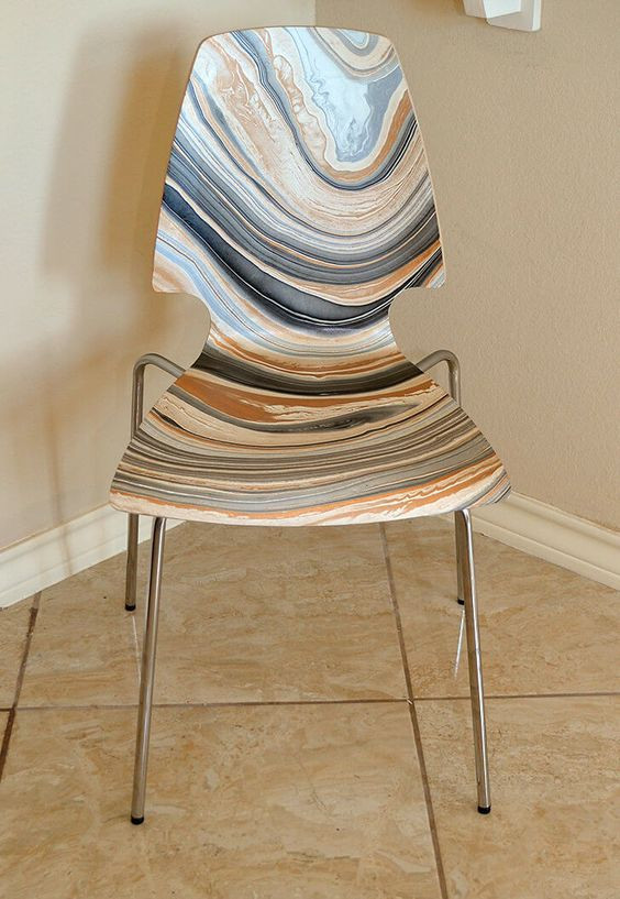 Är inte en marmorerad stol extremt vacker och elegant? Det är riktigt enkelt att göra en med en IKEA-stol, lite marmorerat papper och lite lim.